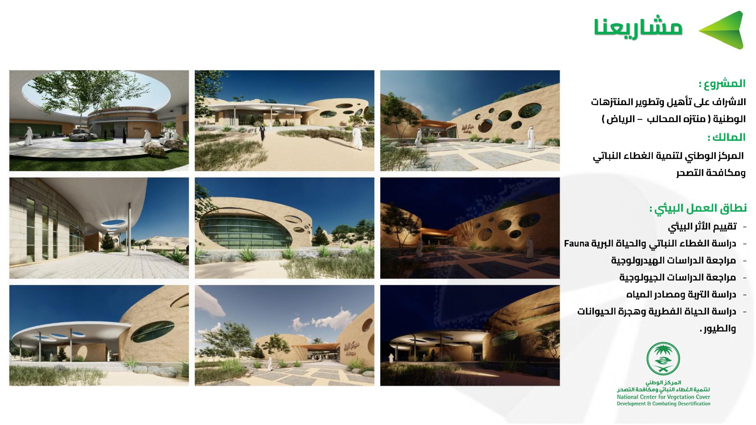 In the project of supervising the rehabilitation and development of national parks, such as Al-Mahlab Park in Riyadh, Amron Arabia for Environmental Services provided technical support and the necessary environmental studies.
